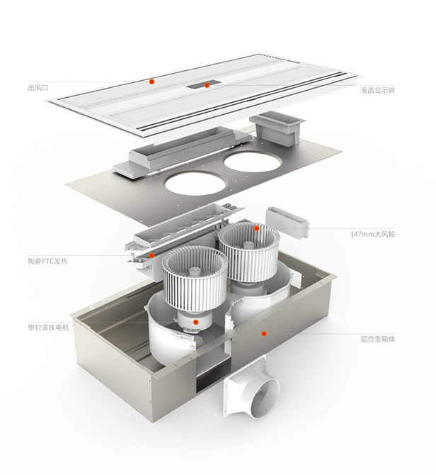 陶瓷PTC加熱,通過不斷循環(huán)來提高浴室溫度,送熱極為均勻。2700W大功率, 雙核動力,高制熱量系統(tǒng)設計,使發(fā)熱效率更高,熱損耗更低。高制熱,快速溫暖空間, 不僅讓您暢享沐浴時光,即便在洗漱更衣區(qū)也可享受溫暖。